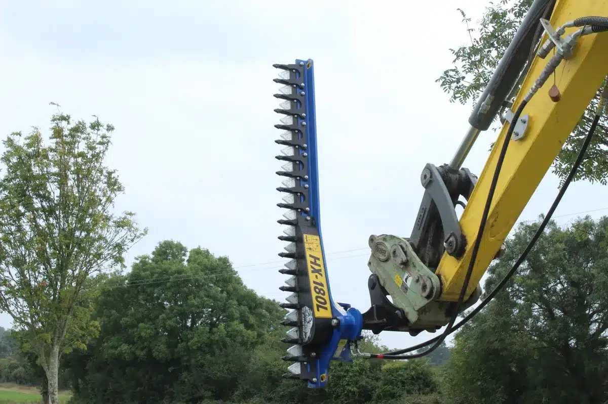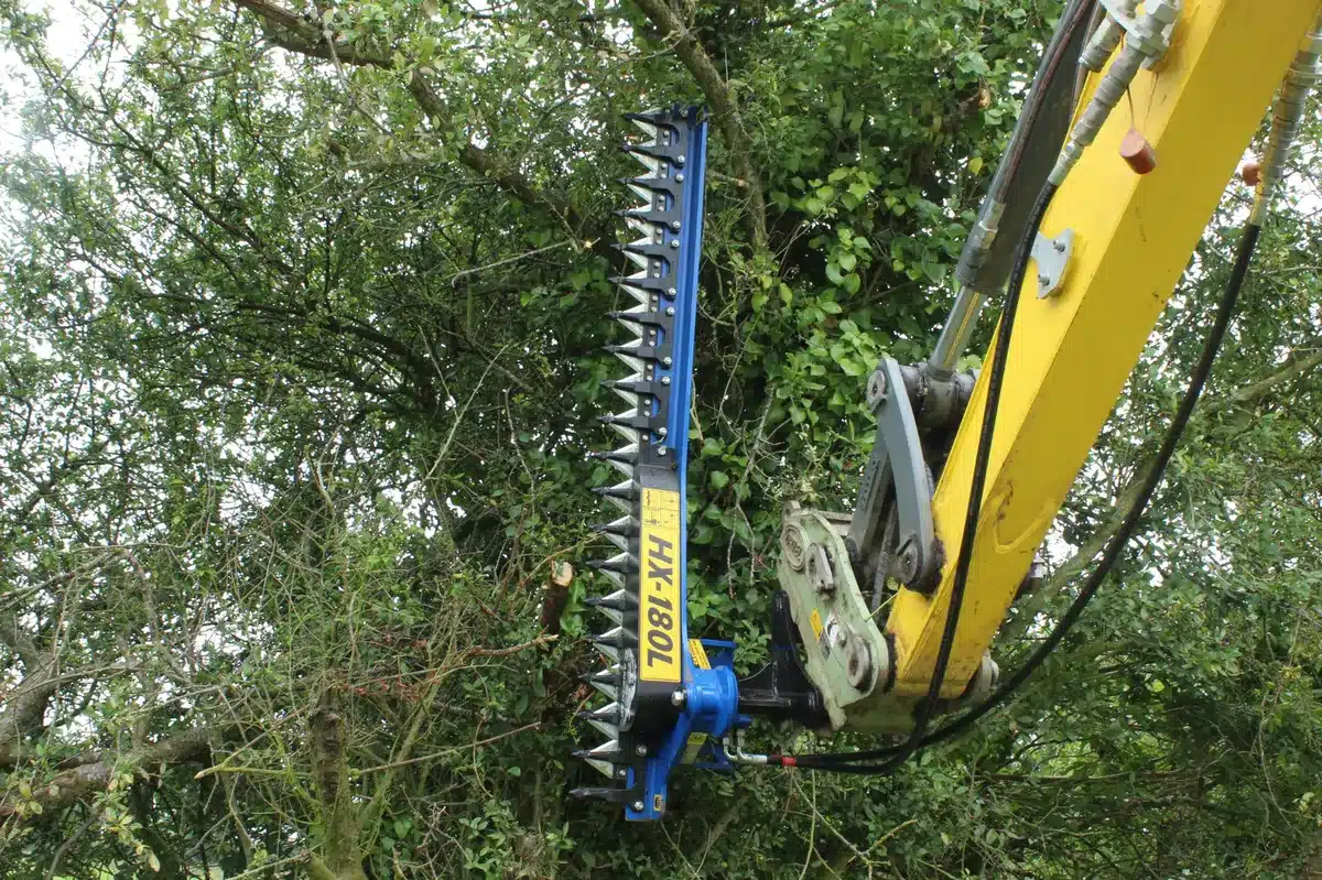 The Slanetrac HX180L Mini Digger Finger Bar Hedge Cutter attachment suits a wide range of machines from 4t up to 10t. With a 1.8m width, the robust low maintenance Slanetrac HX Hedge Cutter has individually replaceable Hardox cutting sections and comes supplied with adjustable mounting brackets to suit your particular machine and hydraulic pipes to connect to your machines rock breaker lines for fast effortless installation. With a maximum cut of 65mm the HX series offers a larger cut while still being able to do a fine hedge.